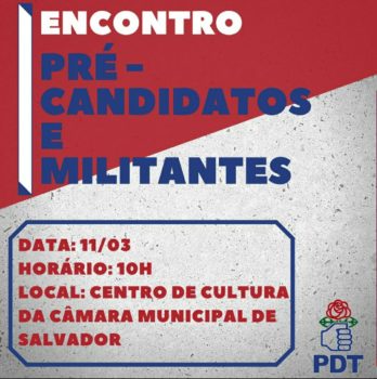 10h – Encontro com Movimentos Sociais e Pré Candidatos a Vereador de Salvador – Centro de Cultura da CMS – Praça Municipal, Centro.
