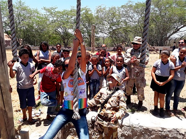Sessenta e cinco crianças e adolescentes da Escola Municipal Dom João VI, localizada no município de Teofilândia, conheceram, nesta terça-feira (5), a Companhia Independente de Policiamento Especializado (Cipe) Nordeste, com sede em Ribeira do Pombal. Acompanhados por professores e recepcionados pelo comandante da unidade, major Wellington Morais, a garotada participou da solenidade de hasteamento das bandeiras, conheceu a estrutura e o funcionamento da companha, assistiu a um vídeo do cão farejador da Cipe e, sob supervisão e orientação do efetivo policial, brincou na pista de obstáculos.