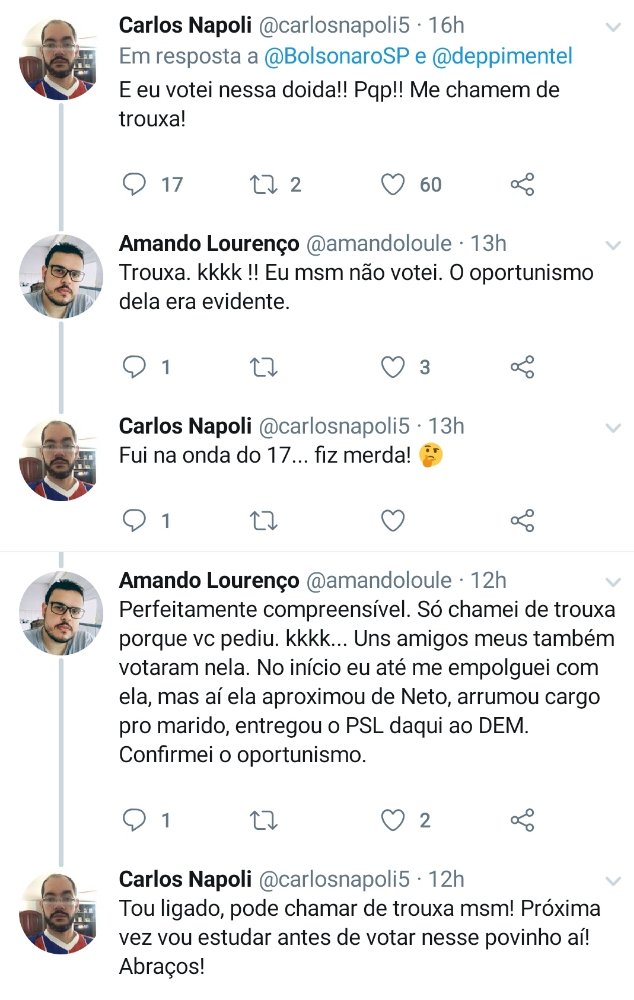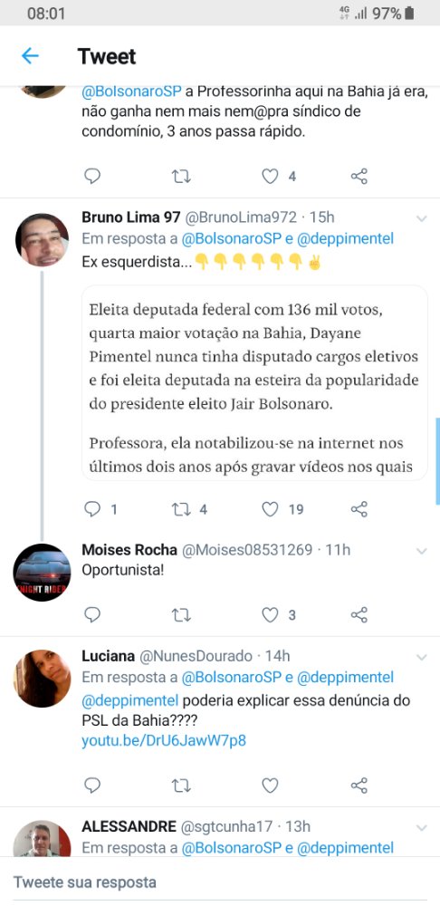 A parlamentar baiana sofre como nunca. Suicídio político? Confira nos prints.