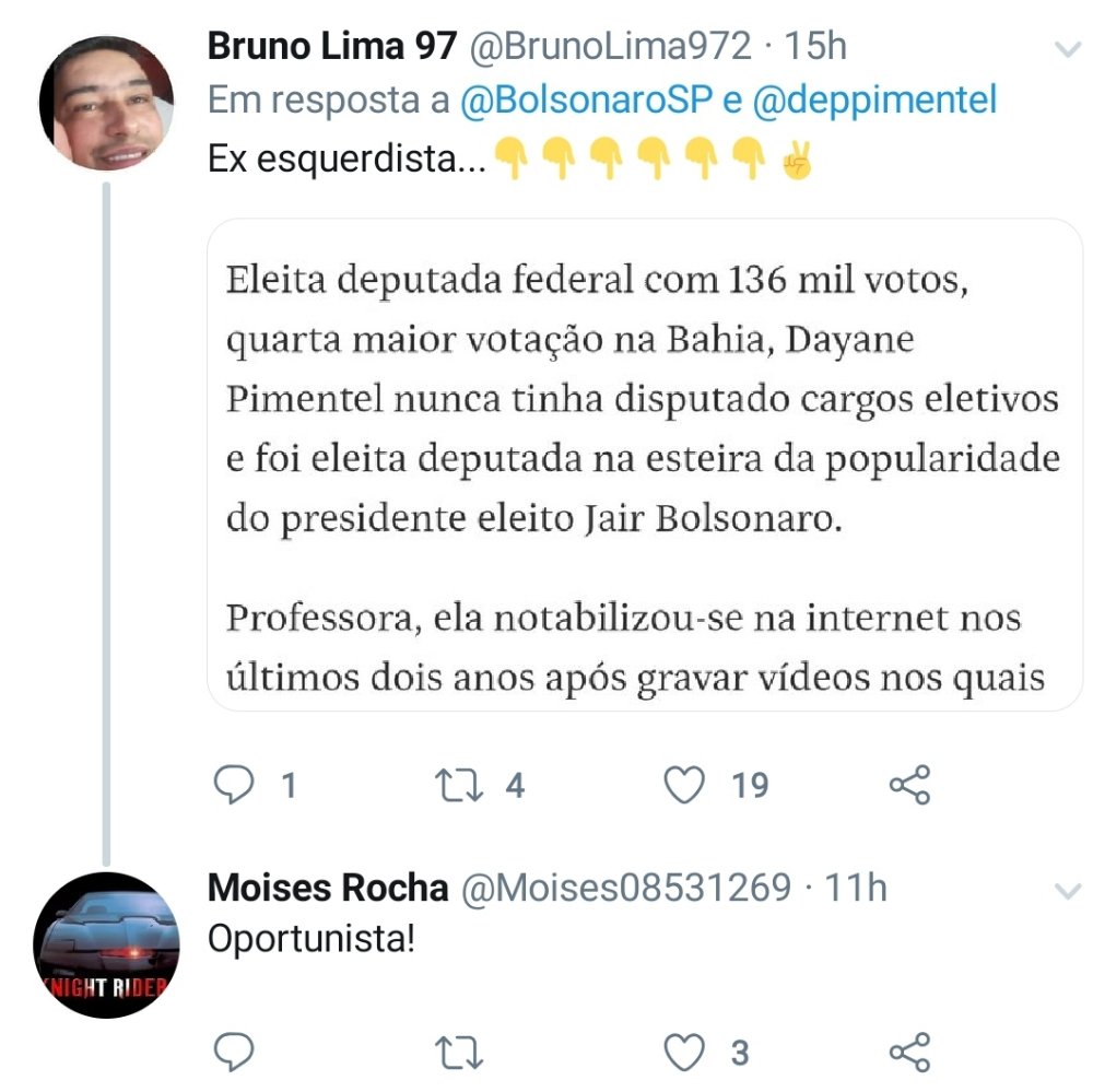Dayane Pimentel: massacre em redes sociais, perda de seguidores em massa e unfollow de Bolsonaro