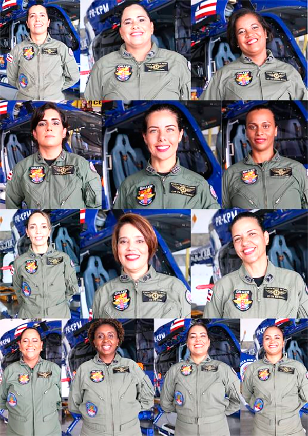 Entre as militares oficiais estão as capitães Alaine de Carvalho Vitorio (chefe da Coordenação de Gestão Orçamentária, Financeiro e de Licitações), Danusa de Oliveira Andrade (piloto de helicóptero e adjunta da Coordenação de Gestão Orçamentária, Financeiro e de Licitações) e Maíra Galindo (piloto de helicóptero e adjunta da Unidade de Instrução e Treinamento), além da aluna a oficial Cristiane Sousa Azevedo Santos e as subtenentes Natália Eufrásio Monteiro (adjunta Setor Financeiro) e Divaneide de Andrade Costa (graduada do dia).