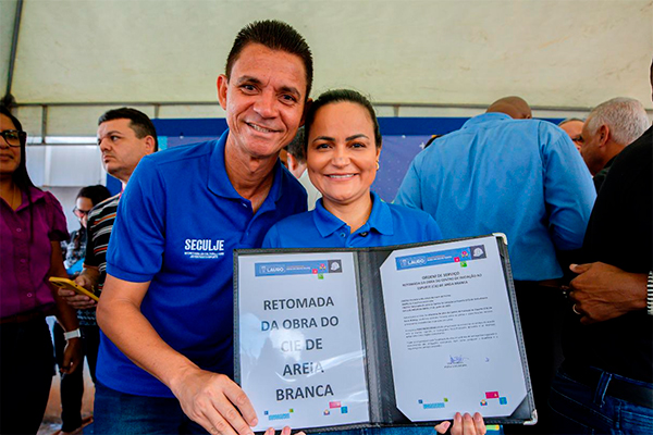 Está oficialmente assinada a ordem de serviço para a retomada da obra do Centro de Iniciação ao Esporte (CIE) de Areia Branca. O ato aconteceu na manhã desta quinta-feira (12/6), na Rua Romualdo Bispo dos Santos, no bairro, e marca mais um passo no fomento ao esporte. A iniciativa é da Prefeitura de Lauro de Freitas, por meio das secretarias municipais de Infraestrutura e Serviços Públicos e de Cultura, Lazer, Juventude e Esporte (SECULJE).
