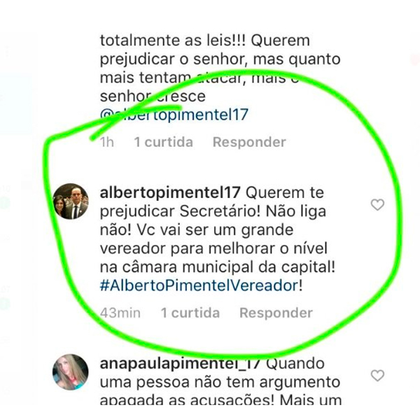Candidato a vereador na capital baiana através de uma gafe em Instagram (print abaixo), Pimentel conta com a força dos seus seguidores e simpatizantes democratas em Salvador.