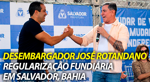 Corregedor-geral de Justiça, o desembargador Edvaldo Rotondano, conversou sobre a regularização fundiária em Salvador e interior da Bahia. “Anos e anos em busca da propriedade para o Calabar e Alto das Pombas que há muito buscava solução e graças a Deus, gradativamente, estamos conseguindo tanto em Salvador quanto no interior. Fomentamos e incentivamos a regularização fundiária.”