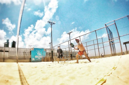 O cenário é o Clube Espanhol. As quadras são cobertas por areia fina, e a energia é contagiante.