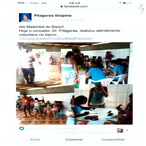 O Ministério Público Eleitoral afirma que a prova coligida aos autos notícia que o mesmo, além da caravana, também atendia em sua residência e sempre pedia “uma ajuda”, e nos comentários das próprias postagens, os eleitores se dirigiam ao mesmo como futuro prefeito e a conduta aconteceu até junho/2016, sendo evidente o abuso.