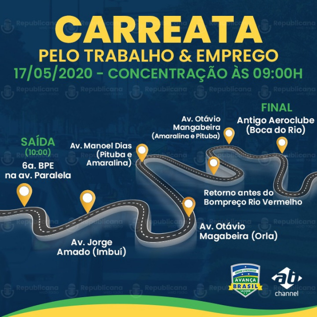 “Decore seu carro, moto, caminhão, caminhonete, van, Uber, Taxi, ou qualquer outro veículo com duas ou mais rodas e participe. Use mascara e traga sua faixa ou cartaz de reivindicação. A pauta é uníssona: Salvador/Bahia não pode morrer de fome.”