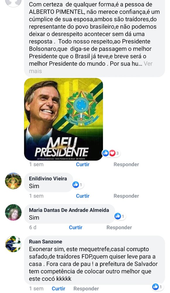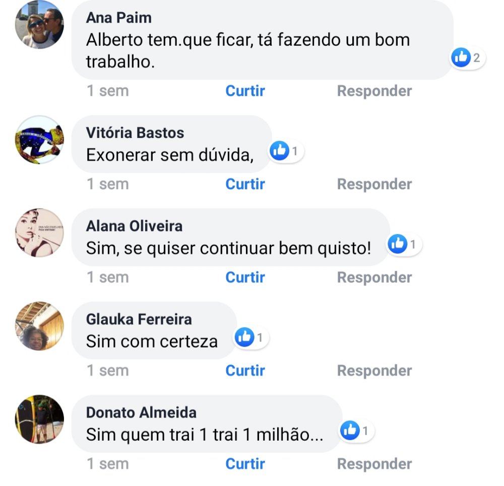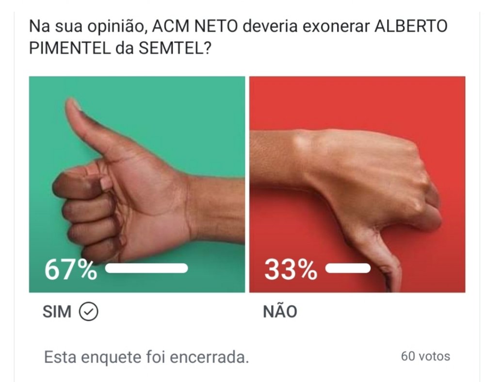 Em pesquisa realizada pela #TVServidor em Facebook, internautas solicitam ao prefeito ACM Neto o afastamento imediato do outrora bolsonarista Alberto Pimentel. Para Neusa, o principal motivo é a “deixa de traição” que deixa o peselista.