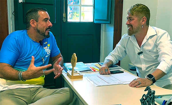 Na última semana, Gegê Magalhães, candidato a vereador de Salvador, se reuniu com George Vladimir, gerente de promoção cultural da Fundação Gregório de Matos, para discutir o fortalecimento da cultura na cidade por meio de projetos estratégicos e inovadores. Durante o encontro, realizado na sede da Fundação, a pauta foi o Projeto Viva Cultura, que visa fomentar iniciativas culturais com possibilidade de captar até 500 mil reais em recursos.