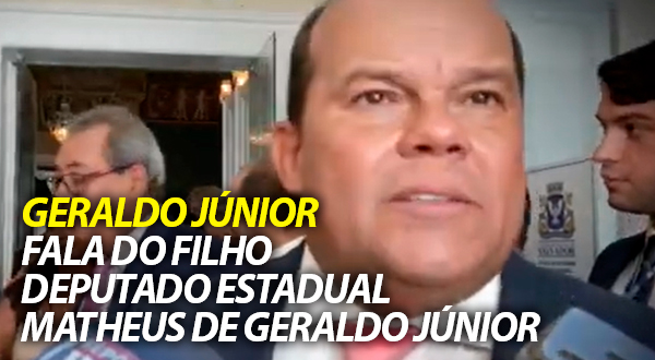 Em entrevista, o vice-governador da Bahia, Geraldo Júnior expressou toda a sua alegria ao participar da posse do filho, o deputado estadual Matheus de Geraldo Júnior “ao lado do presidente Adolfo Menezes, junto ao governador Jerônimo”.