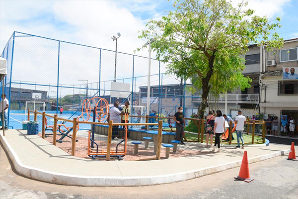 “O local antes era um campo de barro e, quando chovia, o pessoal não conseguia jogar bola e a lama ia até a casa das pessoas. Agora é uma quadra poliesportiva, com iluminação em LED e até contenção. Sabemos da importância de uma quadra como esta para a juventude, que agora pode jogar futsal, vôlei e basquete com mais conforto. E ainda tem esta praça, com equipamentos para a convivência dos moradores”, disse Bruno Reis.