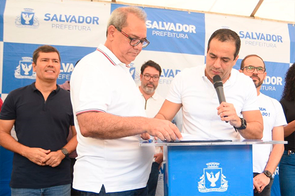 A Prefeitura de Salvador deu início nesta sexta-feira (25) à urbanização do Canal da Fronteira, situado nas imediações da Rua José Bonifácio, em Sete de Abril. O prefeito Bruno Reis esteve no local para assinar a ordem de serviço e autorizou, ainda, a criação de duas praças equipadas com quadras poliesportivas, aparelhos de ginástica e áreas de lazer para a comunidade, além da construção de três escadarias para facilitar a locomoção e dar segurança às famílias que vivem na localidade.