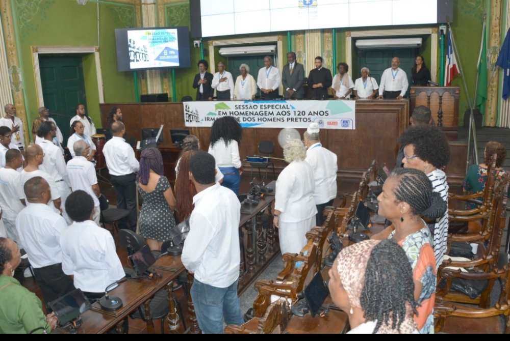 A tradição, resistência e religiosidade da Irmandade dos Homens Pretos foram homenageadas pela Câmara Municipal de Salvador, em sessão especial dirigida pelo vereador Sílvio Humberto (PSB), na noite desta quarta-feira (17), no Plenário Cosme de Farias. Ao comemorar os 120 anos da elevação da Venerável Ordem Terceira do Rosário de Nossa Senhora às Portas do Carmo, dezenas de pessoas reverenciaram a história iniciada há mais de 300 anos por angolanos escravizados no Brasil.