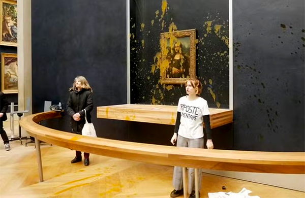 Numa manhã de domingo que prometia ser como qualquer outra no museu do Louvre, em Paris, a tranquilidade foi substituída por um momento de espanto. Duas imbecis, determinadas a passar uma mensagem sobre a “importância de um sistema alimentar sustentável”, escolheram um método de protesto bastante inusitado: atiraram sopa vermelha no vidro que protege a famosa pintura da Mona Lisa.