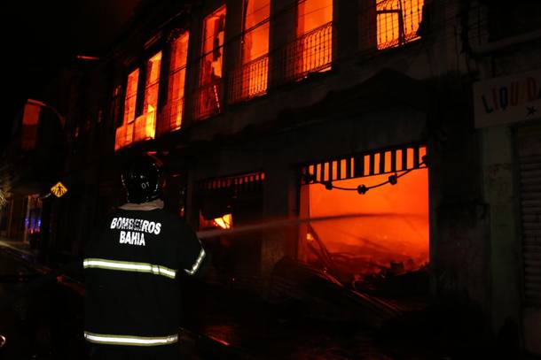 De acordo com os Bombeiros, as chamas destruíram um casarão comercial na avenida José Joaquim Seabra, na Baixa dos Sapateiros.