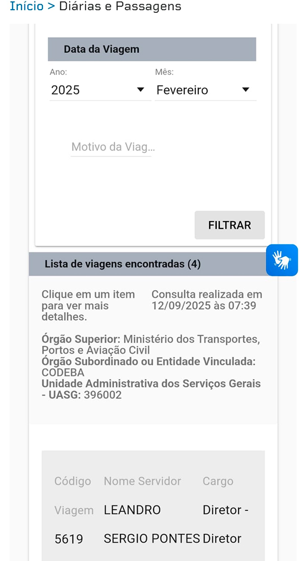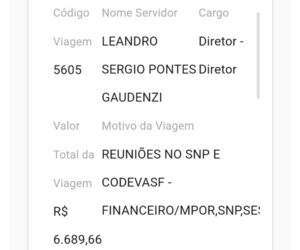 Só no primeiro semestre deste ano, Gaudenzi abocanhou quase R$ 90 mil líquidos em viagens oficiais, segundo dados publicados no próprio site da Codeba.