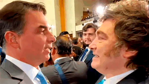 A posse do novo presidente do Chile, José Antonio Kast, nesta quarta-feira (11), acabou virando também palco de um encontro que repercutiu nas redes e na política internacional. O senador Flávio Bolsonaro (PL-RJ) se encontrou com o presidente da Argentina, Javier Milei, e agradeceu publicamente pela concessão de asilo político a um brasileiro condenado pelos atos de 8 de janeiro.