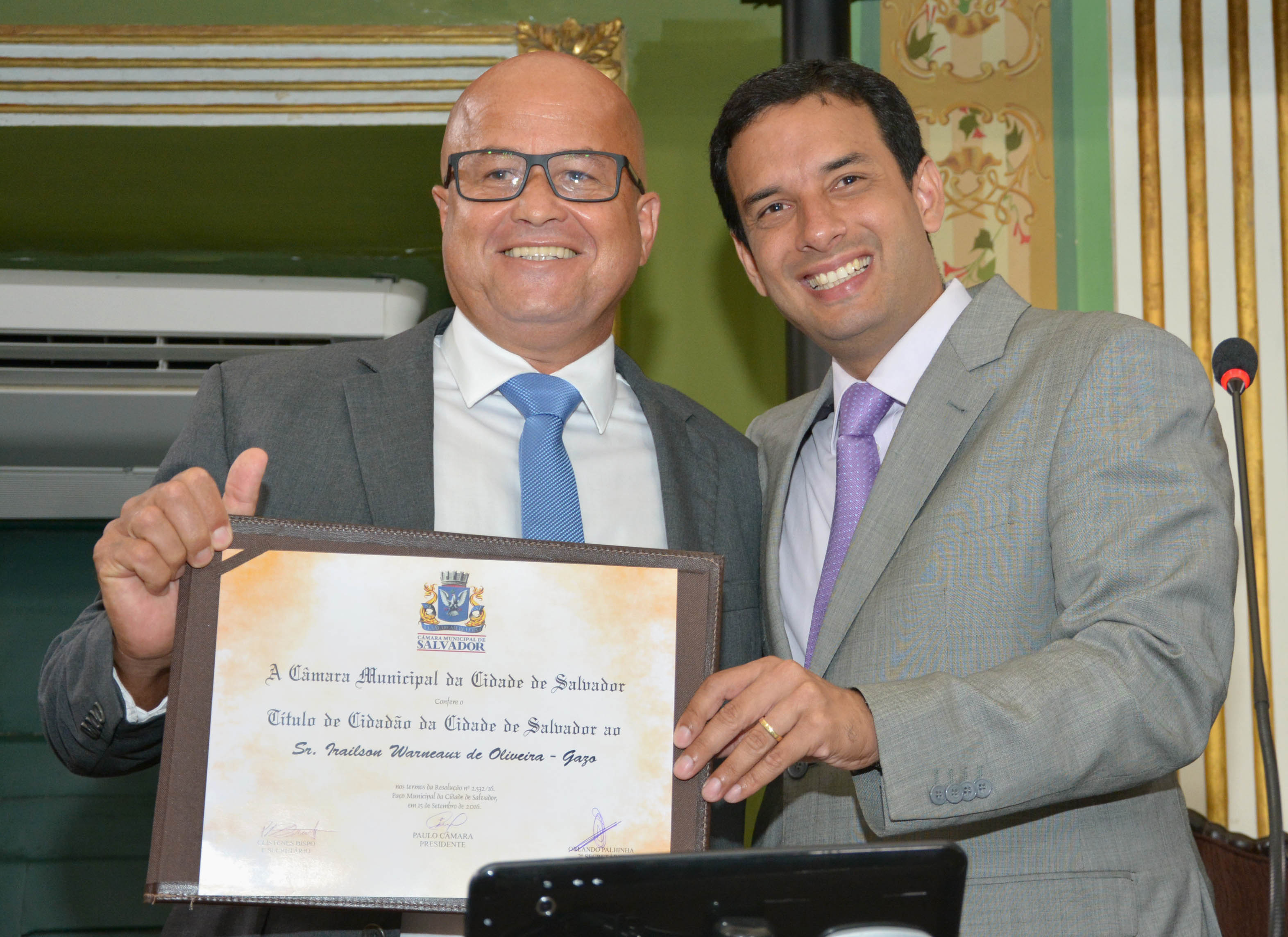 A trajetória sindical de Irailson Warneaux de Oliveira, presidente do Sindicato dos Trabalhadores da Construção Pesada e Montagem Industrial da Bahia (Sintepav-Bahia), foi premiada na manhã desta quinta-feira (15), no plenário da Câmara Municipal. Natural de Valença, no interior do estado, Gazo, como é conhecido na categoria, recebeu o Título de Cidadão da Cidade do Salvador por iniciativa do vereador Leo Prates (DEM).