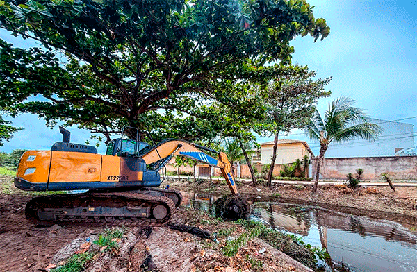 Em um trabalho contínuo e preventivo para manter a cidade mais limpa e evitar transtornos causados por fortes chuvas, a Prefeitura de Lauro de Freitas, por meio da Secretaria Municipal de Infraestrutura e Serviços Públicos, realiza a limpeza do canal do Rio Sapato, em Ipitanga. A ação, executada por equipes da pasta, ocorre de forma manual e mecanizada, com a retirada de vegetação e resíduos descartados irregularmente, reforçando as medidas de prevenção.