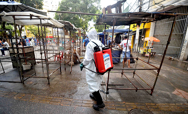 “A intenção é contemplar todos os bairros da cidade. A equipe é formada por oito agentes com bombas costais, além de trator e caminhonete pulverizadores, que realizam o jateamento da solução de hipoclorito de sódio e água nas superfícies, para reduzir os riscos de contaminação”, detalha Gordilho.