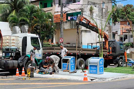 A Empresa de Limpeza Urbana de Salvador (Limpurb) instalou mais duas lixeiras subterrâneas na capital baiana. Os novos equipamentos, com capacidade para acondicionar 2,5 toneladas de resíduos cada, foram instalados na entrada do Candeal, nesta sexta-feira (7). A capital baiana já conta com sete estruturas semelhantes que, além das duas implantadas hoje, podem ser encontradas ainda no Comércio (1), Barra (2) e Porto da Barra (1).