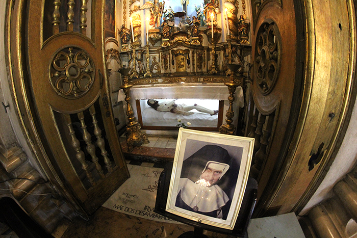 Já no Santuário, foi a vez de José Raimundo conversar com a guia Eli Libório, da Vivofap Tour. É na Capela das Relíquias que está o túmulo com os restos mortais de Santa Dulce e que possui uma representação da religiosa em tamanho original, feito em Nápoles, na Itália.