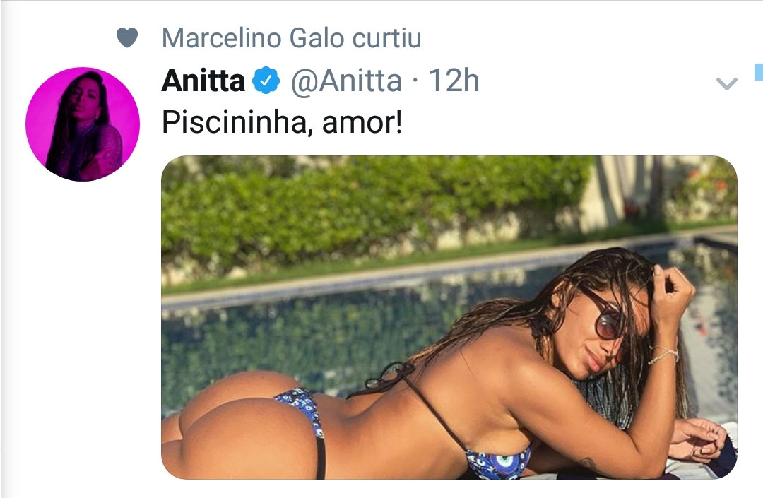 Em sua conta particular no Twitter, o petista Marcelino Galo aprovou a última foto da Anitta…