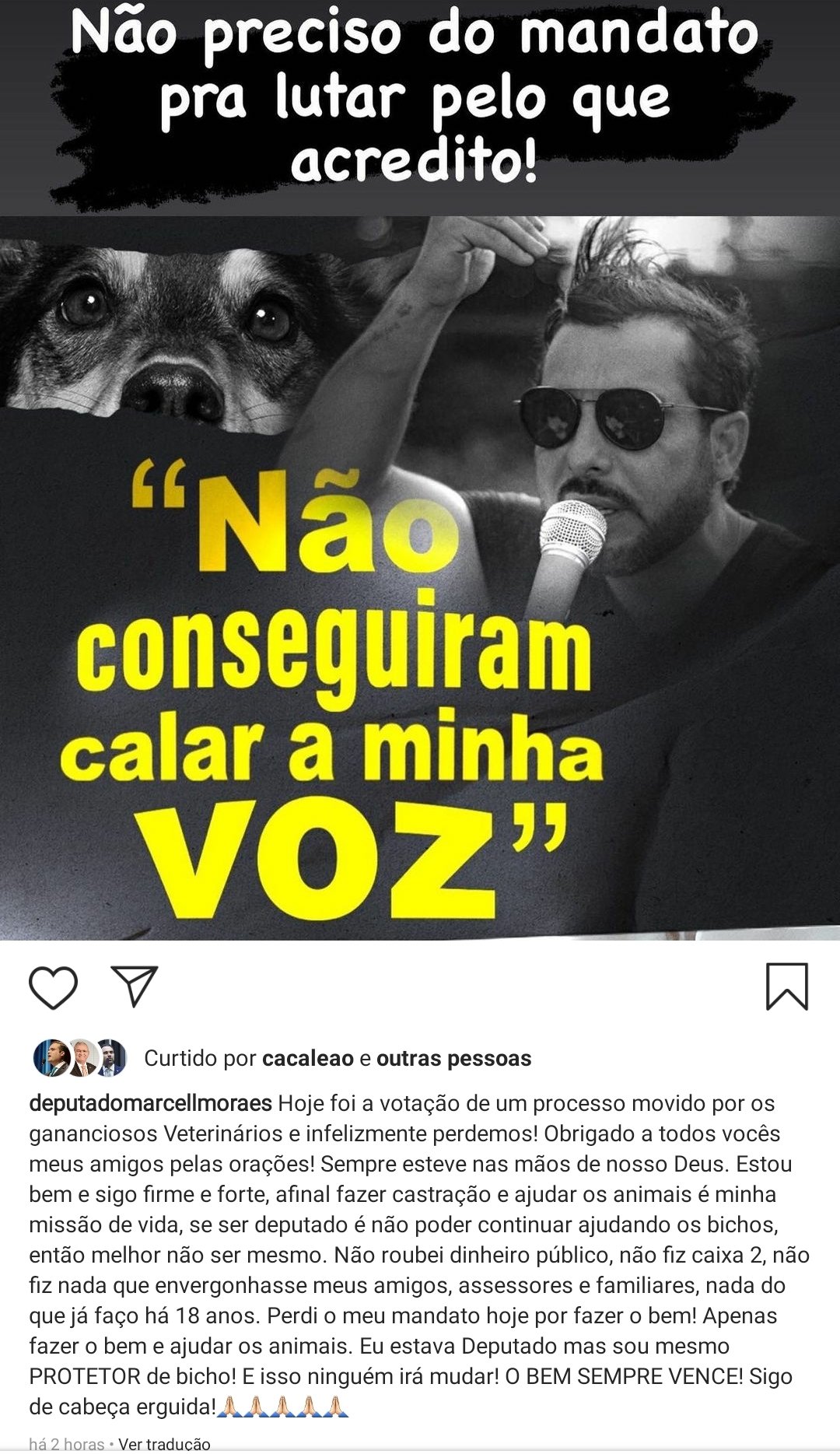 O deputado estadual cassado Marcell Moraes decidiu evitar interações em Instagram e “fechou” o campo de comentários.