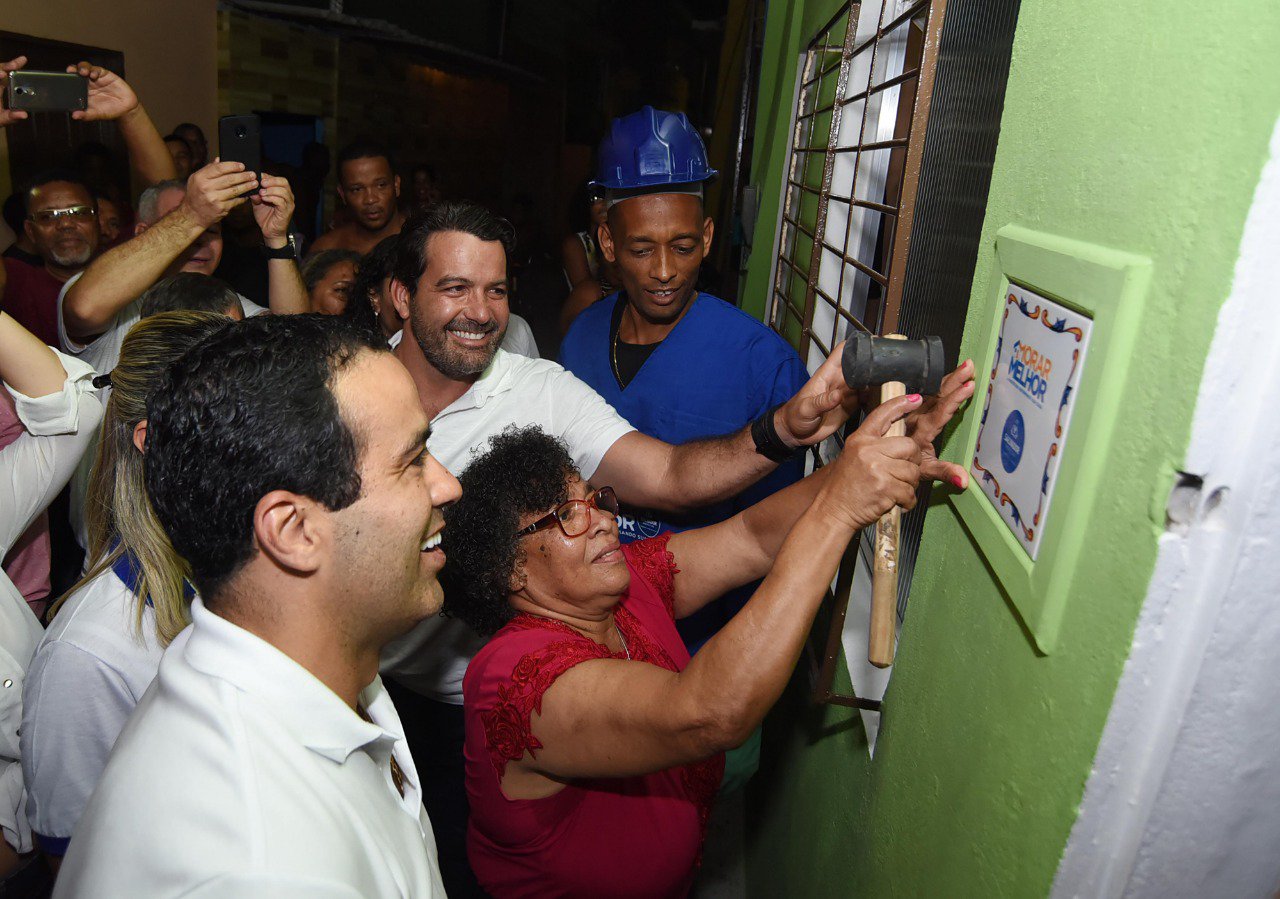 O vice-prefeito Bruno Reis autorizou a reforma de 200 unidades habitacionais pelo Morar Melhor, em Colinas de Mussurunga, na noite de sexta-feira (11). Ao lado da vendedora de geladinho Rita de Jesus, uma das primeiras beneficiárias do programa na comunidade, Bruno disse que a iniciativa da Prefeitura vai levar mais dignidade e conforto para 40 mil lares até 2020. “Estamos fazendo obras em toda a cidade. E, por meio do Morar Melhor, levamos essas melhorias para dentro das casas das pessoas também, dando mais qualidade de vida à população”, afirmou.