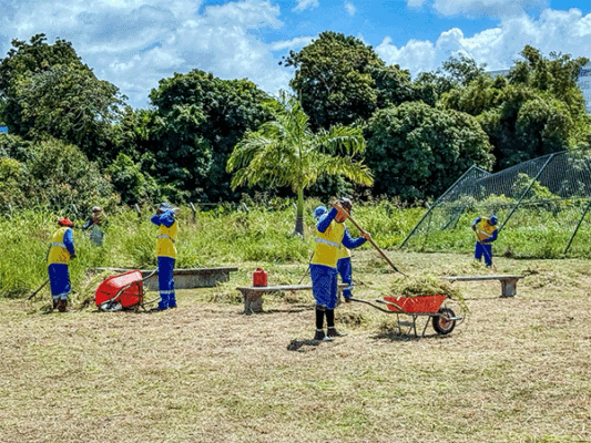 Reforçando as ações contínuas para manter a cidade limpa, a Prefeitura de Lauro de Freitas, por meio da Secretaria Municipal de Infraestrutura e Serviços Públicos, realizou, nesta sexta-feira (17/4), um mutirão de limpeza no Parque Alameda dos Ingazeiros, localizado no Centro da cidade, por meio de uma força-tarefa da equipe de manutenção. O parque, que integra a macrodrenagem do Rio Ipitanga e tem como objetivo reduzir os problemas de alagamento causados pelas chuvas no entorno, recebeu serviços de capinação manual, roçagem com o auxílio de roçadeiras e varrição completa do espaço, garantindo mais cuidado, organização e bem-estar para os frequentadores.