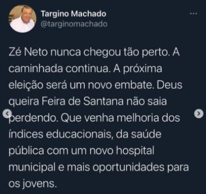 Ora defensor “ferrenho” de ACM Neto… ora crítico do petismo… ora fã da cloroquina, o parlamentar cassado Targino Machado publico em redes sociais uma análise um tanto quanto bizarra. Confira.