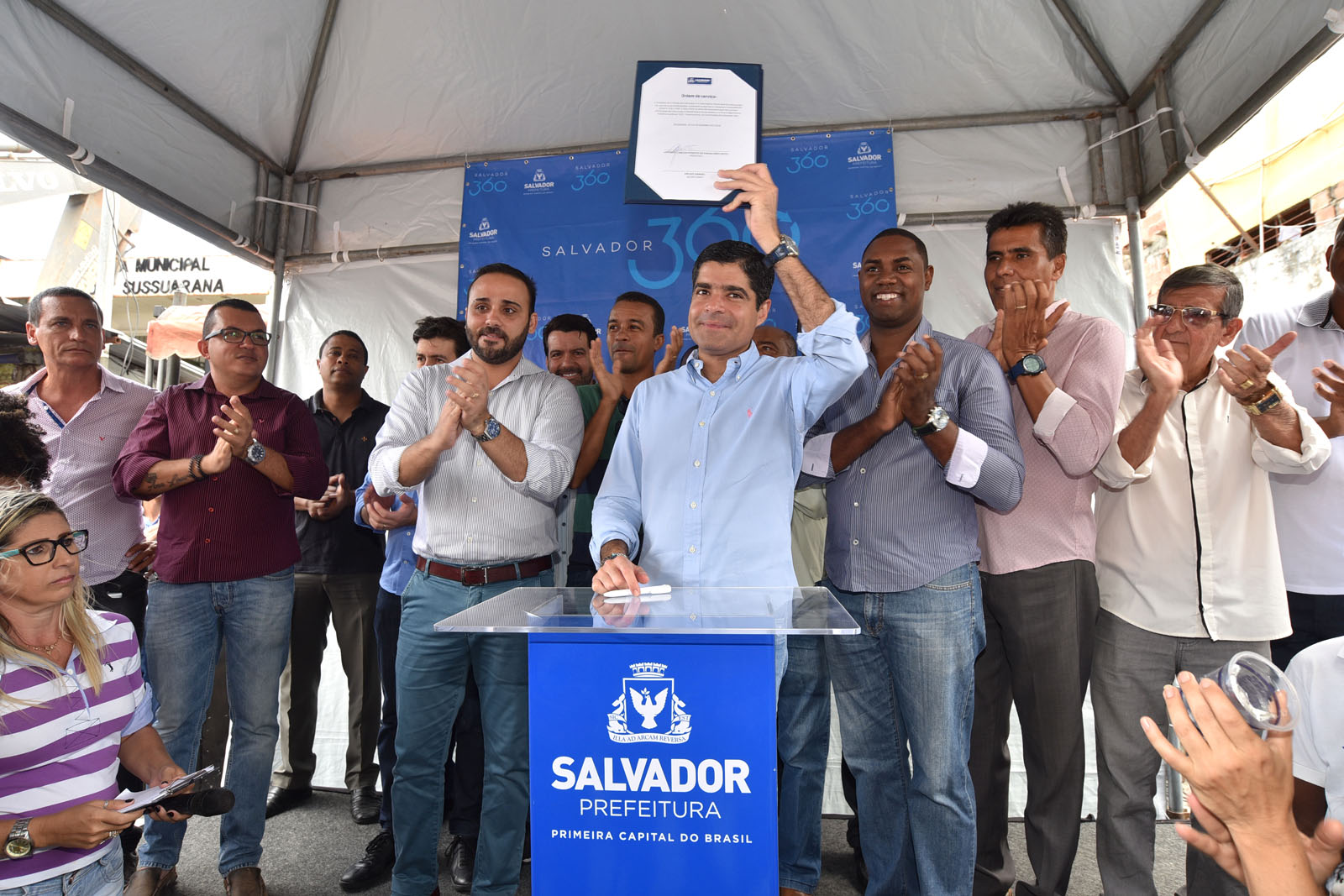 O evento também contou com as presenças do vice-prefeito Bruno Reis; do secretário municipal da Educação, Bruno Barral; e do ex-presidente do Fundo Nacional de Desenvolvimento da Educação (FNDE), Sílvio Pinheiro, dentre outras autoridades, lideranças comunitárias e população. De acordo com o prefeito, em 2013, Salvador tinha 42 escolas em pré-moldado. Em visita a algumas delas, todas apresentavam o mesmo relato dos moradores: situação precária dos imóveis, como problemas de infiltração e alagamento no período das chuvas, provocadas pela falta de manutenção e ação do tempo.