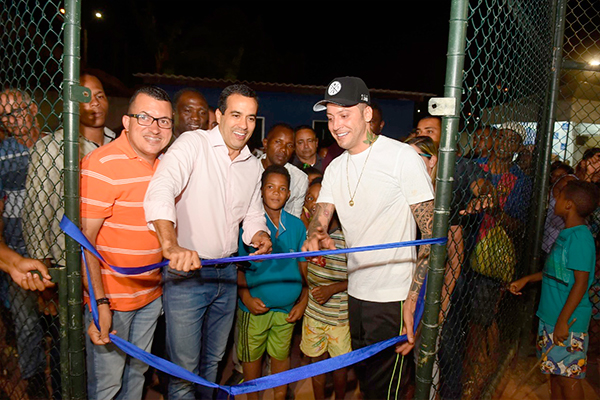 Os moradores do Novo Marotinho ganharam um campo de futebol requalificado pela Prefeitura: a Arena da Baixada, entregue à comunidade pelo vice-prefeito Bruno Reis e pelo deputado federal Igor Kannário, na noite de segunda-feira (30). Ao lado do vereador Sérgio Nogueira e de diversos líderes comunitários, Bruno também inaugurou a nova iluminação em LED instalada na localidade. O equipamento esportivo, segundo Bruno Reis, foi revitalizado com investimento de R$ 187,7 mil, para a realização de serviços de pintura e drenagem, construção da arquibancada, muro de contenção, alambrado, passeios e vestiário, além da instalação da rede de cobertura sobre o campo. Os recursos foram destinados à obra por meio de emenda parlamentar do deputado Igor Kannário.
