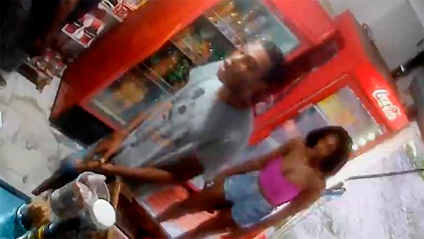 Neste vídeo, que rapidamente se espalhou pela internet, observa-se não apenas o assaltante, mas também um casal já presente no estabelecimento.