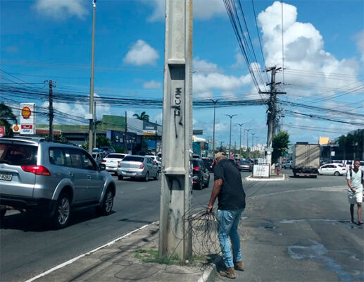 Operação Visão Limpa remove 100 kg de cabos e fios no combate poluição visual em Buraquinho e Miragem