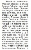 O petista Jaques Wagner fez um comentário extremamente preconceituoso sobre a chapa formada por Major Denice e Fabíola Mansur. O senador destilou o seu racismo à esquerda ao supor que a população poderia se referir à dupla como “café com leite”. Se fosse um candidato de centro ou de direita a falar tal estultice, em pleno século XXI, o mundo estaria desabando desde ontem (16), quando a matéria com a pérola vergonhosa de Jaques Wagner foi publicada no jornal Tribuna da Bahia. “Não adianta escolher uma candidata negra apenas por conta de uma conveniência, de uma estratégia de marketing. Nessas horas, fica evidente o racismo espelhado nos olhos azuis de Jaques Wagner”, condenou um observador da cena política baiana.
