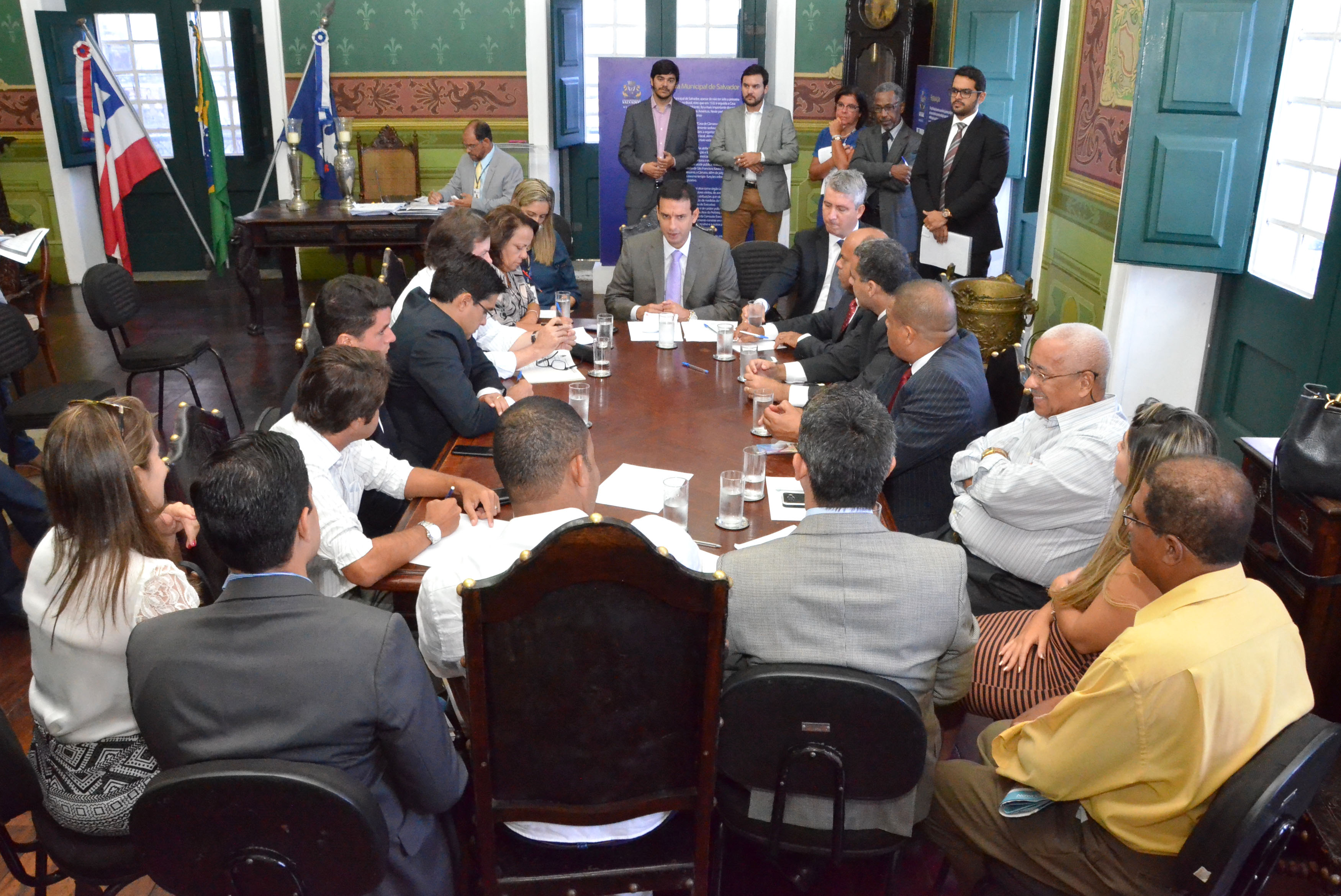 O Plano de Cargos e Vencimentos dos Servidores da Câmara Municipal de Salvador e o projeto de resolução que cria as comissões permanentes de Cultura e Assistência Social serão colocados na pauta de votação da sessão ordinária desta quarta-feira (8). A definição aconteceu na primeira reunião do Colégio de Líderes da 18ª Legislatura, conduzida pelo presidente Leo Prates (DEM), na manhã desta segunda-feira (6), no Salão Nobre da Câmara.