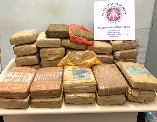 Trinta e dois tabletes de maconha foram apreendidos na manhã desta segunda-feira (16), por equipes da 39ª Companhia Independente de Polícia Militar (CIPM/Boca do Rio), após denúncia anônima enviada ao Centro Integrado de Comunicações (Cicom). O flagrante aconteceu na Rua Tenente Gustavo, no bairro da Boca do Rio. “Quando chegamos no local encontramos o carro modelo Elantra, cor preto, placa NZG 3J30, aberto e com alguns tabletes de maconha na parte interna. Quando subimos no prédio, informado na denúncia como ponto de armazenamento de drogas, localizamos o imóvel aberto e com o restante da erva espalhada no chão”, informou o comandante da 39ª CIPM, major Antônio Batista de Macedo Júnior.