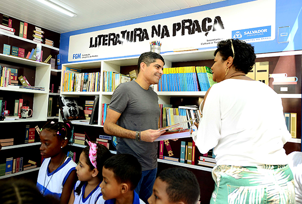 Cerca de um ano após ser entregue à população completamente requalificada, com equipamentos de jogos e lazer, a Praça Lord Cochrane, na Avenida Garibaldi, recebeu neste sábado (13) mais um atrativo. O prefeito ACM Neto deu início ao projeto Literatura na Praça, inaugurando um espaço que estimula o hábito da leitura aos moradores que residem nas comunidades do entorno. O projeto é coordenado pela Fundação Gregório de Mattos (FGM), cujo presidente, Fernando Guerreiro, também compareceu ao evento de lançamento. A praça ganhou um contêiner plotado, ambientado com pufes, carpete e nichos, nos moldes de uma sala de leitura tradicional. A instalação tem um acervo de 380 livros de diversos gêneros, como infantil, juvenil, romance, contos, autoajuda. “Tive a ideia de implantar este projeto nas praças para estimular a leitura entre o público de todas as idades. Dessa forma, além de ser um espaço de lazer e para a prática de esportes, a praça também oferece como opção o acesso à leitura de forma democrática, em um ambiente saudável e de convívio social. Há, inclusive, livros em braile”, afirmou ACM Neto.