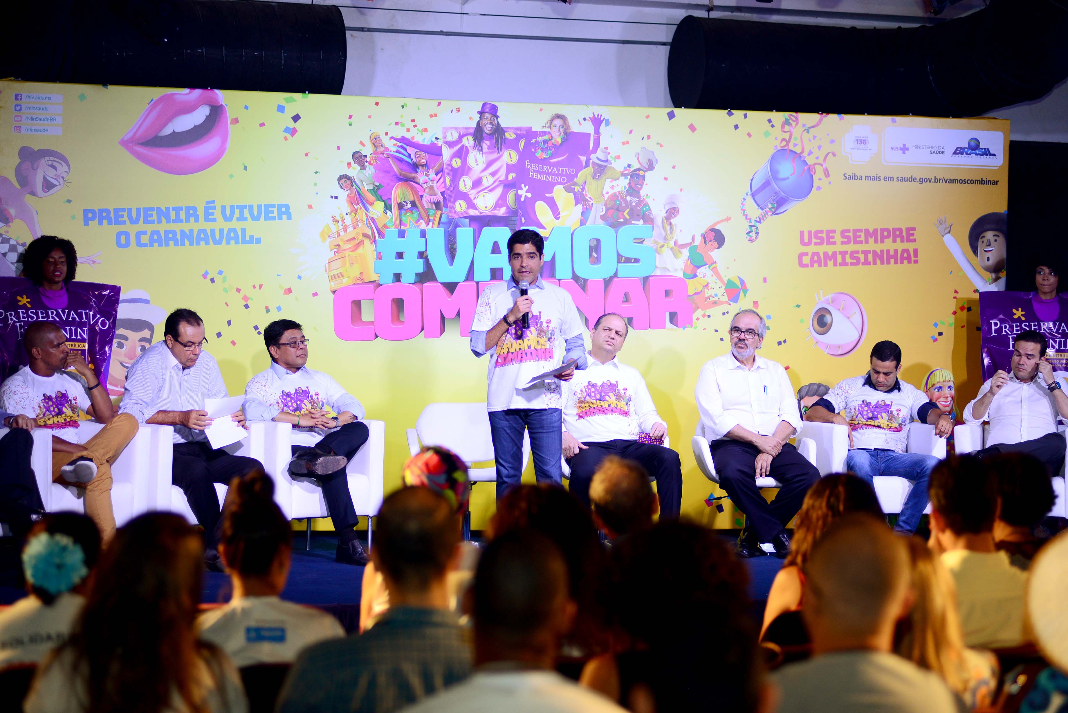 Para conscientizar foliões sobre a importância de um Carnaval mais seguro e livre de Doenças Sexualmente Transmissíveis (DSTs), o prefeito ACM Neto lançou nesta terça-feira (6), ao lado do ministro da Saúde, Ricardo Barros, a Campanha de Prevenção do Carnaval 2018, que tem como tema: “Prevenir é Viver o Carnaval #VamosCombinar”. O lançamento foi realizado em evento que ocorreu no Teatro Gregório de Mattos, na Praça Castro Alves.