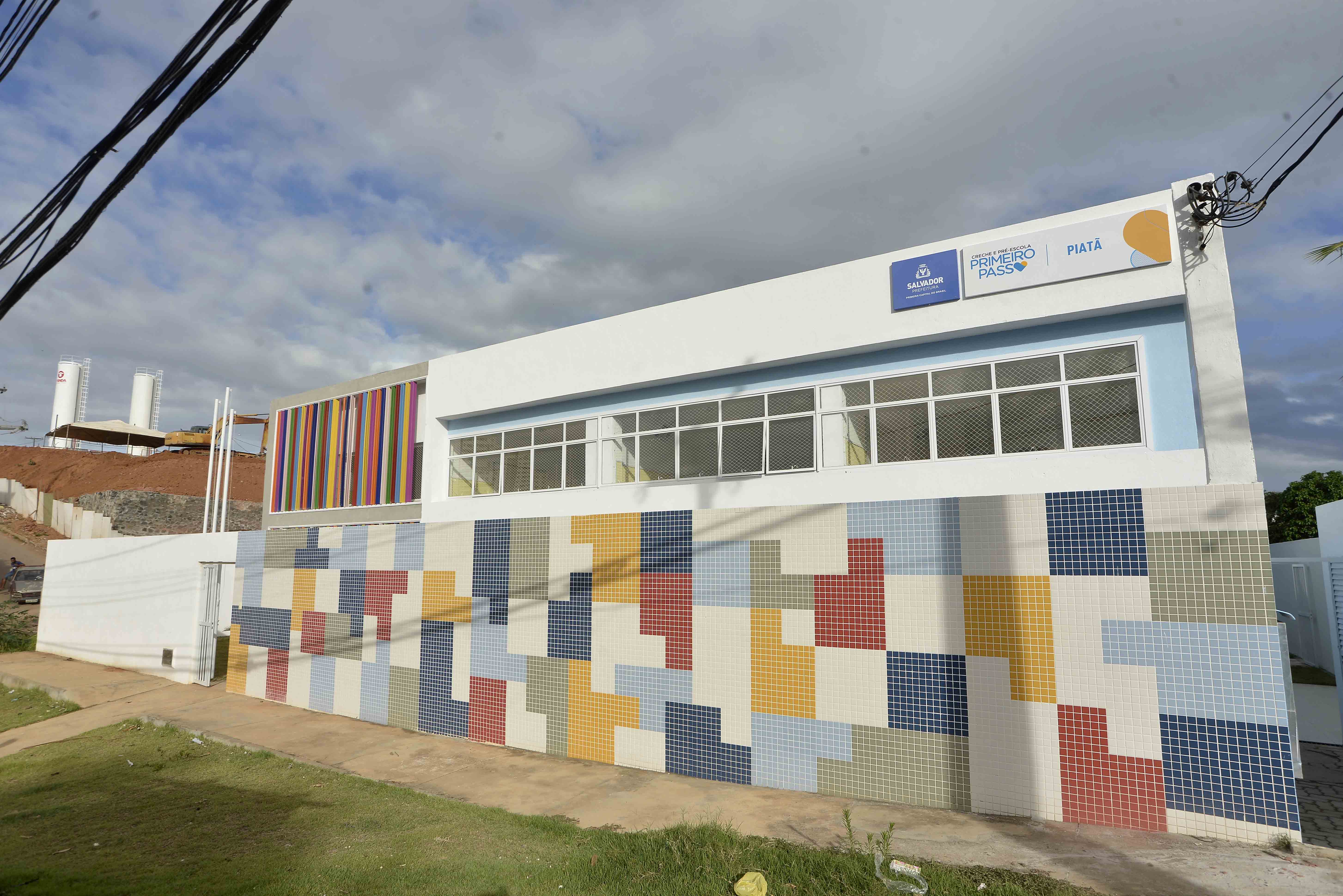 A Creche e Pré-Escola Primeiro Passo Piatã tem 830 metros quadrados de área construída e recebeu investimentos de R$ 2,3 milhões. A unidade possui dez salas de aula, refeitório, área de lazer e acessibilidade.