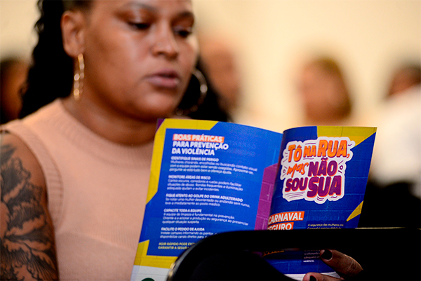 Material informativo – No encontro desta quarta, foram distribuídos panfletos com informações sobre como identificar sinais de perigo, monitorar áreas de risco, como acontece o atendimento para cada caso de violência e quem pode atendê-los. Ao longo da festa, outros materiais serão entregues para os foliões para que o maior número de pessoas possa saber lidar com esses episódios.