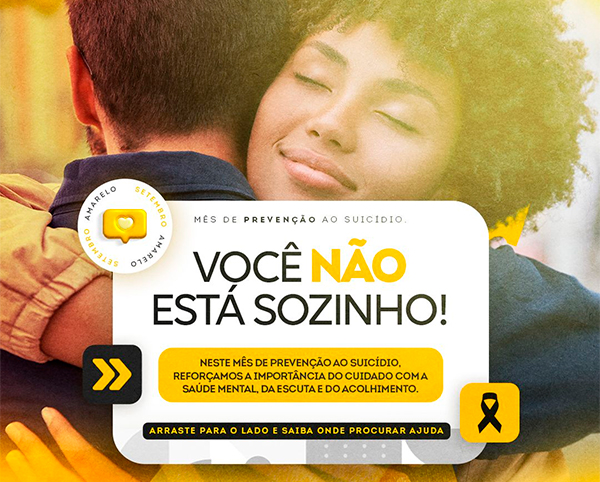 A programação do Setembro Amarelo, no município, contempla ações nas Unidades de Saúde da Família (USFs), no Complexo de Saúde, no Centro Especializado em Reabilitação (CER III) e nos Centros de Atenção Psicossocial (CAPSs). Entre as atividades, estão palestras, rodas de conversa, ações lúdicas e educativas, além de momentos de acolhimento.
