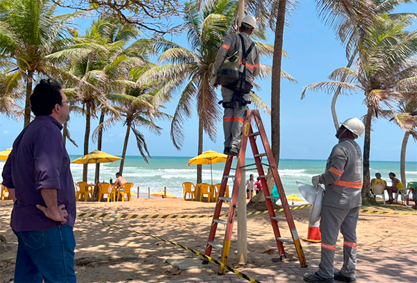 A Prefeitura de Salvador, por meio da Diretoria de Serviços de Iluminação Pública (Dsip), realizou mais uma operação emergencial para repor luminárias furtadas no trecho entre Stella Maris e Praia do Flamengo. Os equipamentos, dotados de anteparos especiais, foram desenvolvidos para proteger tartarugas marinhas que desovam nas praias da região.