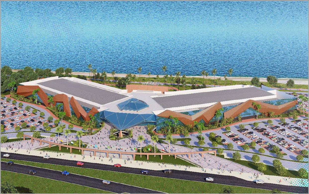 A chegada dos pedestres se dará sob uma cobertura transparente, que forma um “domus” marcado por arcos espaciais metálicos, que criam uma sensação de bem-estar e integram os ambientes internos e externos, possibilitando a visão para o mar e o acesso à área de shows. Os níveis do térreo e do mezanino serão interligados por elevadores e escadas rolantes, estrategicamente posicionadas na praça de eventos, proporcionando fluidez entre os salões e as salas de reuniões. Seus salões são versáteis e permitem variadas formatações, podendo abrigar eventos de diversos tamanhos e segmentos.