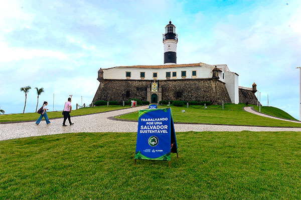 O Farol da Barra, um dos principais pontos turísticos da capital baiana, está mais verde após ação de recuperação do gramado do entorno do Forte de Santo Antônio da Barra, onde fica o equipamento. A ação foi promovida em parceria entre a Secretaria de Sustentabilidade, Resiliência, Bem-Estar e Proteção Animal (Secis) com a Associação de Moradores e Amigos da Barra (Amabarra).