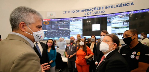 A visita foi iniciada pelo Centro Integrado de Comunicações (Cicom), onde policiais militares, civis e técnicos, além de bombeiros atendem chamados da população. Na Cicom também é feito o acompanhamento de mil câmeras distribuídas em Salvador, na Região Metropolitana e nas maiores cidades do interior da Bahia. Em seguida, o presidente do TRE-BA conheceu o Centro Integrado de Comando e Controle (CICC). Nesta sala, forças de segurança municipais, estaduais e federais atuam com organizações privadas no compartilhamento de informações e na tomada de decisões.