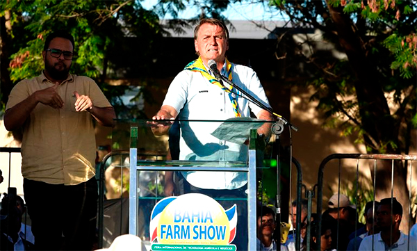 O Presidente Jair Bolsonaro visitou, na tarde desta terça-feira (31/05), a 16ª Bahia Farm Show em Luís Eduardo Magalhães, no Oeste da Bahia. O evento, realizado de 31 de maio a 4 de junho pela Associação de Agricultores e Irrigantes da Bahia (Aiba), é a maior feira de tecnologia agrícola do Norte e Nordeste do país e a terceira maior do Brasil.