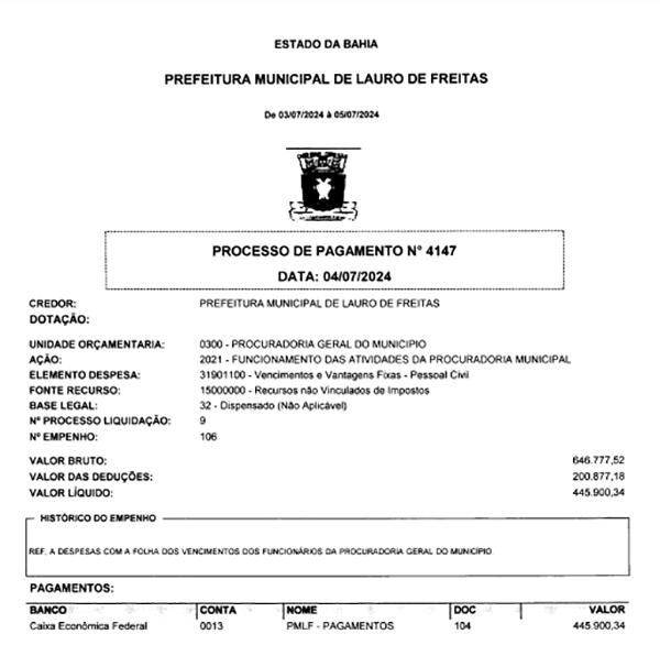Rosalvo recebeu por produtividade mesmo sem estar atuando como procurador do município.
