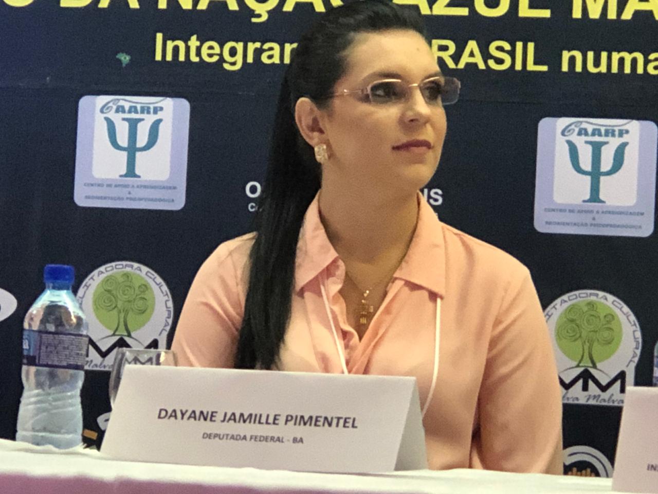 A deputada federal Professora Dayane Pimentel garantiu na manhã deste sábado (23) a guardas civis municipais de todo o País reunidos em Salvador que levará ao presidente Jair Bolsonaro e ao ministro da Justiça Sérgio Moro propostas que viabilizem o armamento dos grupamentos em todos as cidades brasileiras. A presidente do PSL na Bahia participou do I Simpósio Nacional de Guardas Municipais promovido pela União Nacional Azul Marinho (UNA), que ocorre até amanhã no Porto Bello Ondina Praia Hotel, em Ondina.